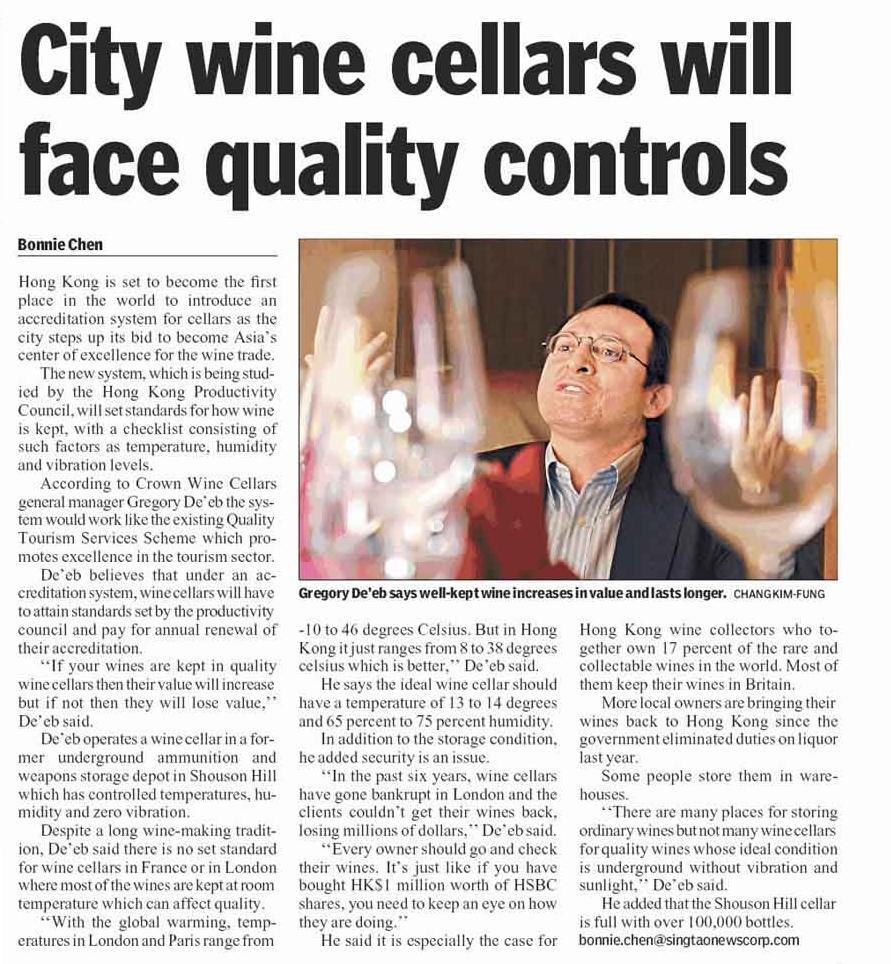 Hong Kong is set to become the first place in the world to introduce an accreditation system for cellars as the city steps up its bid to become Asia’s center of excellence for the wine trade……